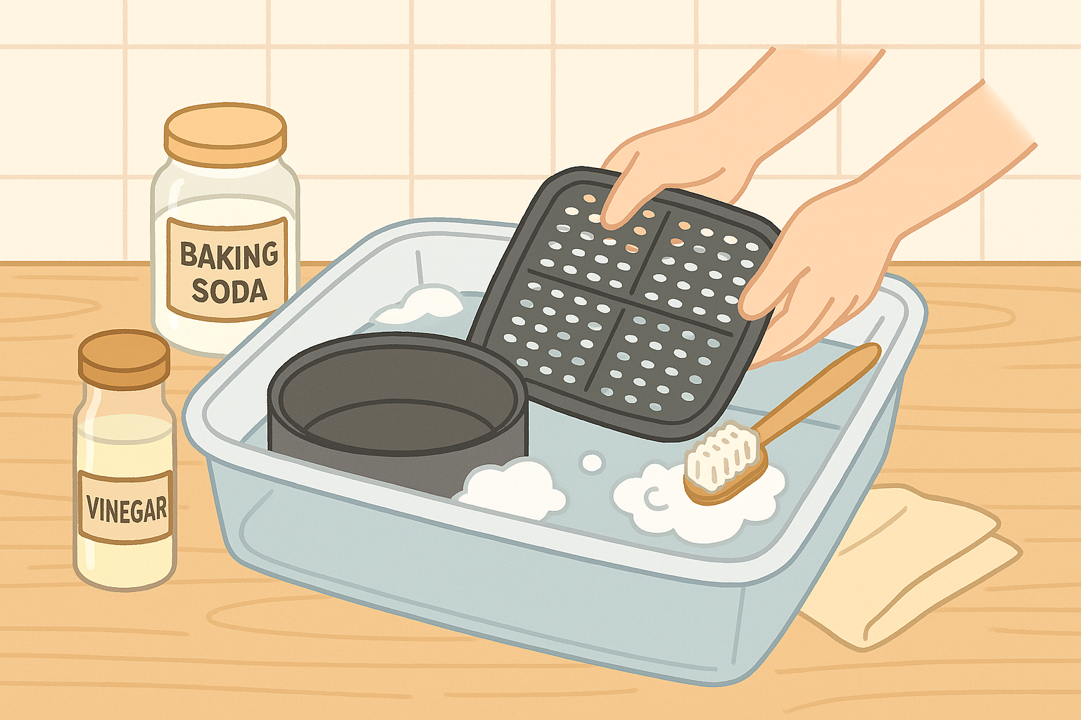 2️⃣ 바스켓과 팬을 15분 정도 담가두기