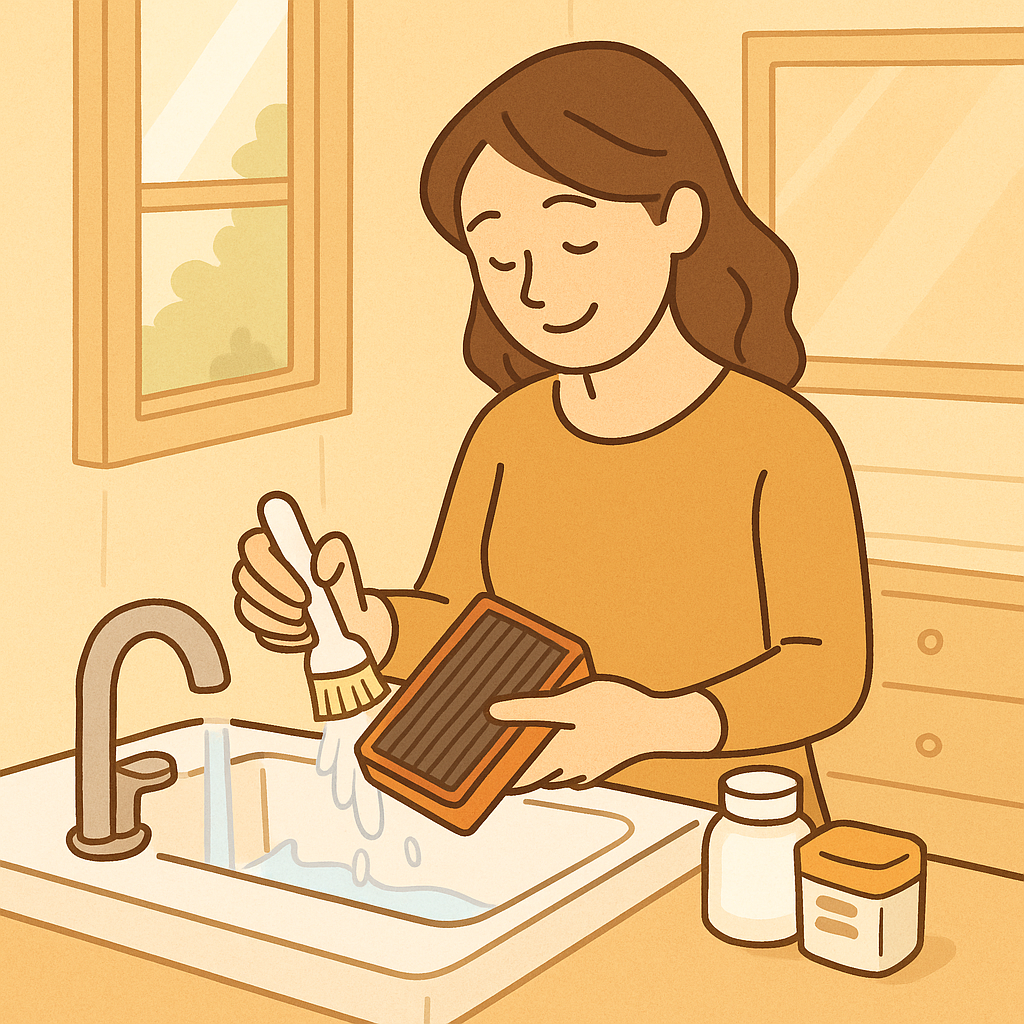 💧 2️⃣ 물세척 가능한 필터는 ‘미온수 + 솔 세척’