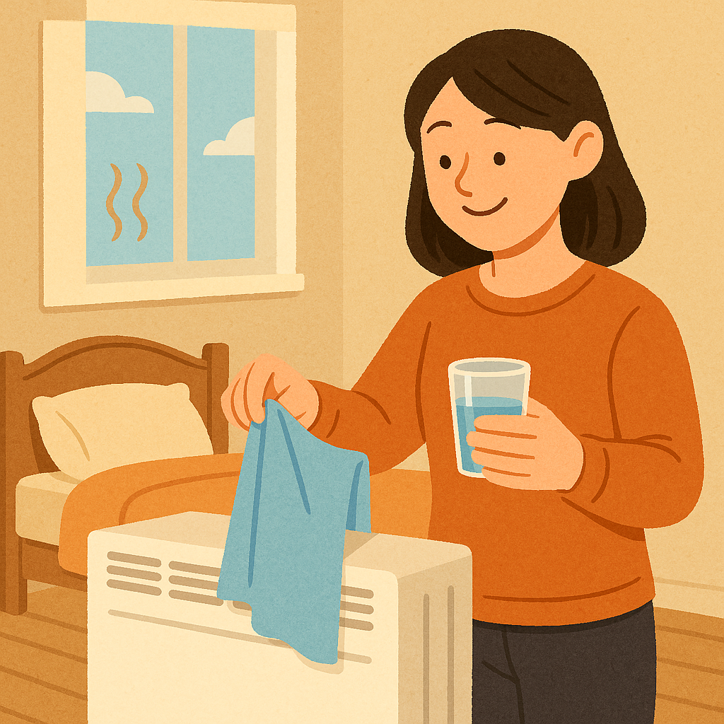 ⭐ 1) 젖은 수건 한 장이면 습도는 바로 올라가요